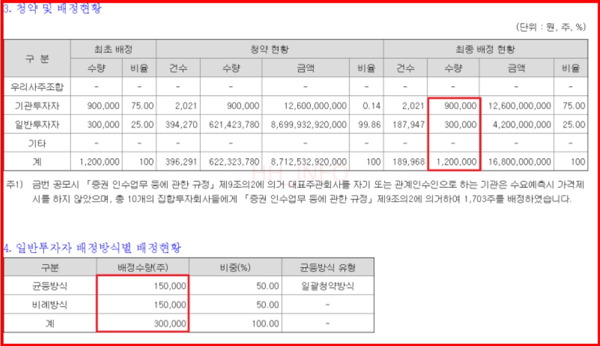 공모주 청약 결과