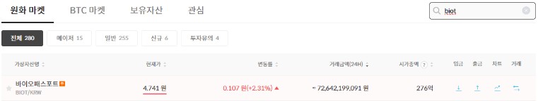 바이오패스포트(BIOT) 김프 현황과 시세