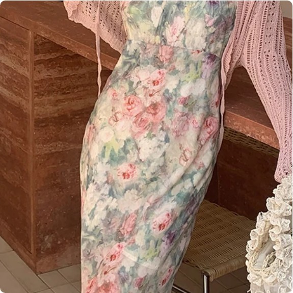 우아한 여성 의류 디자인 감성 슬리밍 꽃 프린트 탱크 드레스 여름 여성 카디건