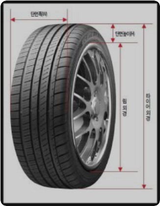 - 설명: 타이어의 단면 폭을 나타내며, 밀리미터(mm) 단위로 표시됩니다.